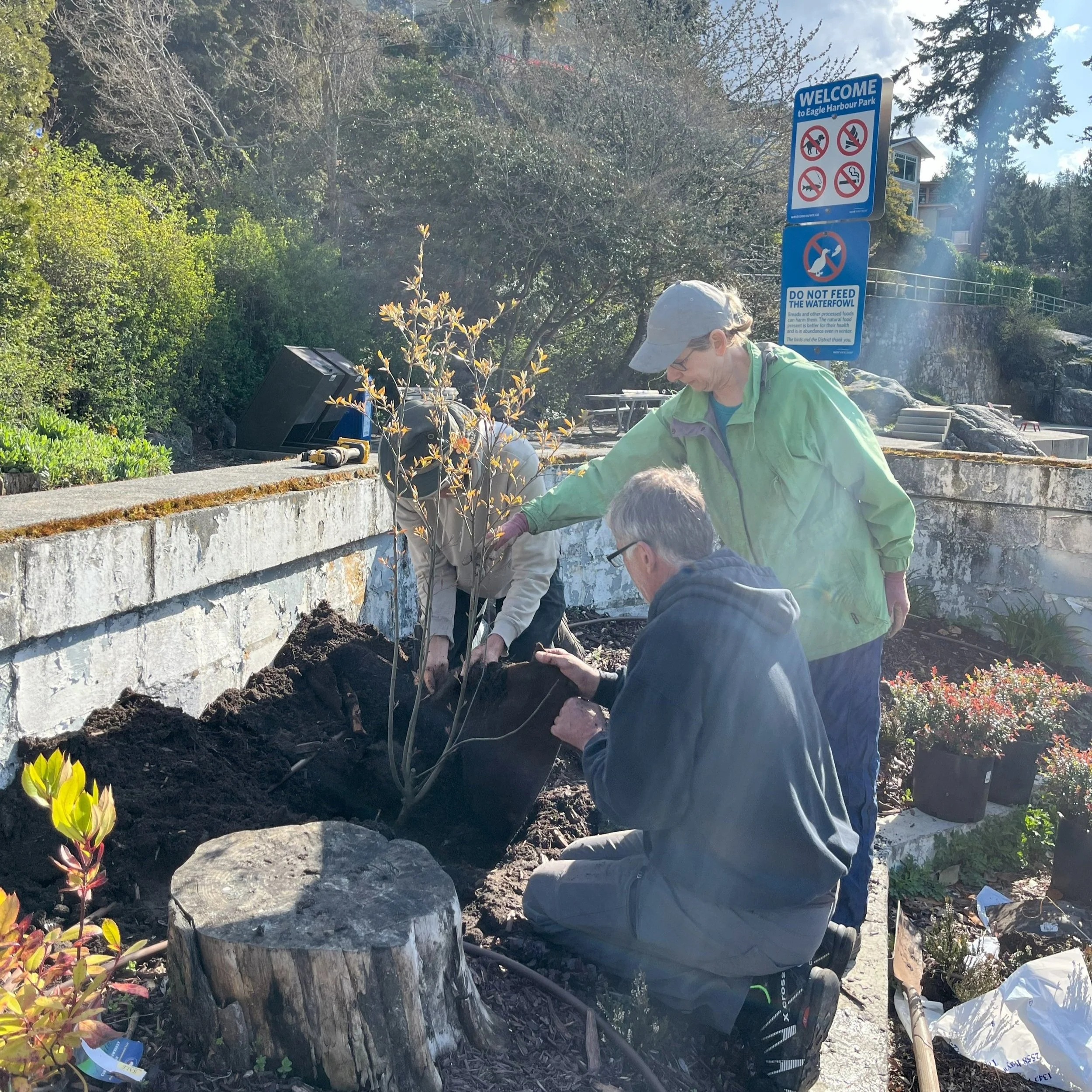 A big thank you to Anita Green for her generous donation of plant material for our Beach Corner Garden. Anita's donation of a Serviceberry tree and evergreen huckleberry shrubs puts the finishing touches to a previously wild area of our gardens that were in need of rejuvenation after a tree was felled by a windstorm a few years ago. The donation was made possible from the sale of Anita's woven scarves at the Cork and Canvas last autumn, so much appreciation goes to our members for supporting our cause. We hope that you enjoy the warmth of the scarves and the beauty of this corner of our gardens.