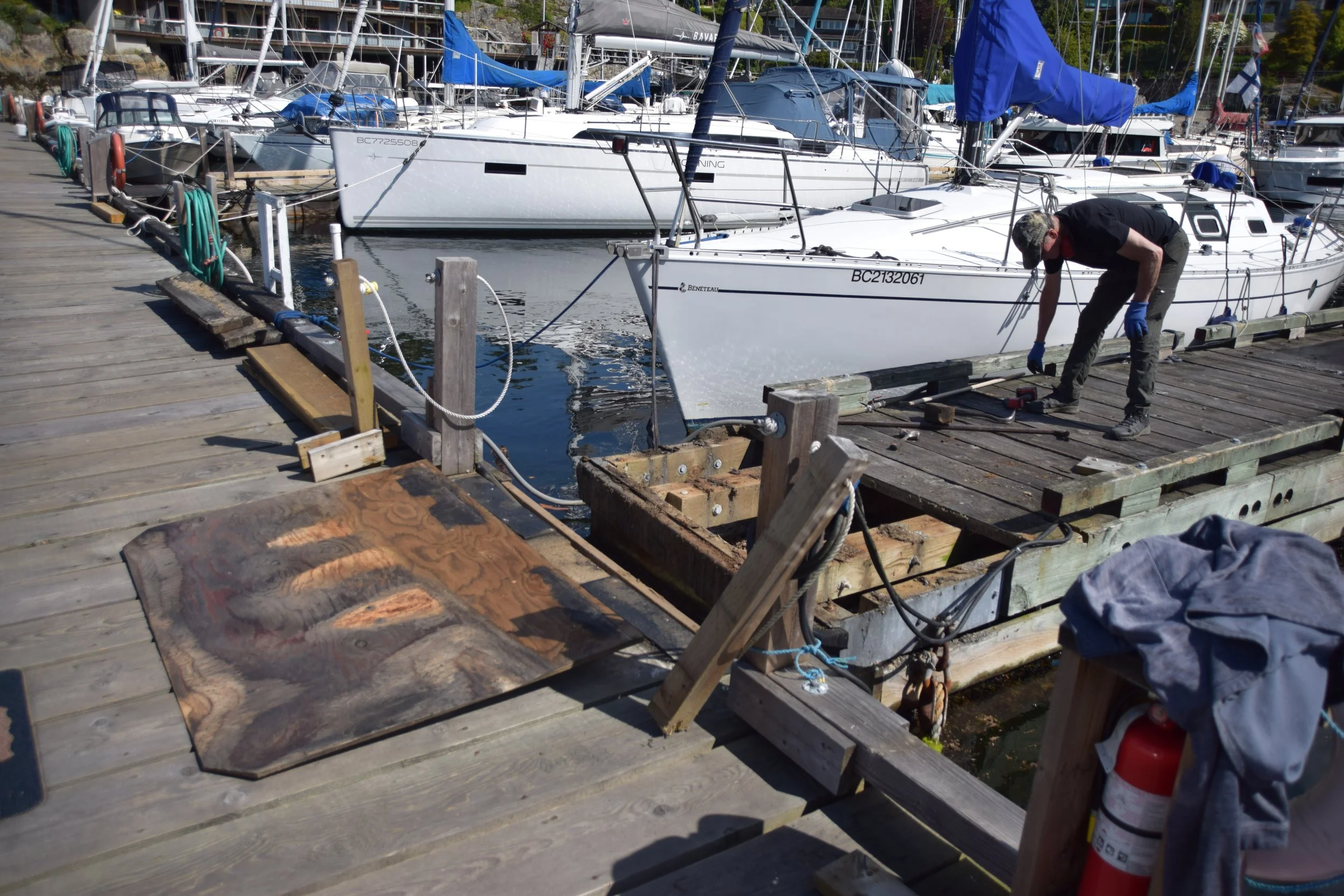 Our resident carpenter, Rob Sloss, continues to work on refurbishment of the docks. He is working on Dock 6, or βCommodore's Rowβ along with other vessels owned by current and past executives of EHYC. Don't get me wrong, Rob just happens to be following a logical dock by dock process and there is no favouritism intended.